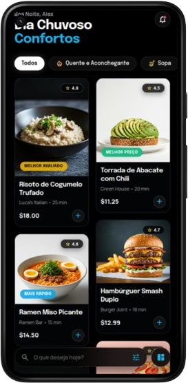 Cliente final, parceiro comercial ou entregador. Cada perfil tem uma jornada específica.
